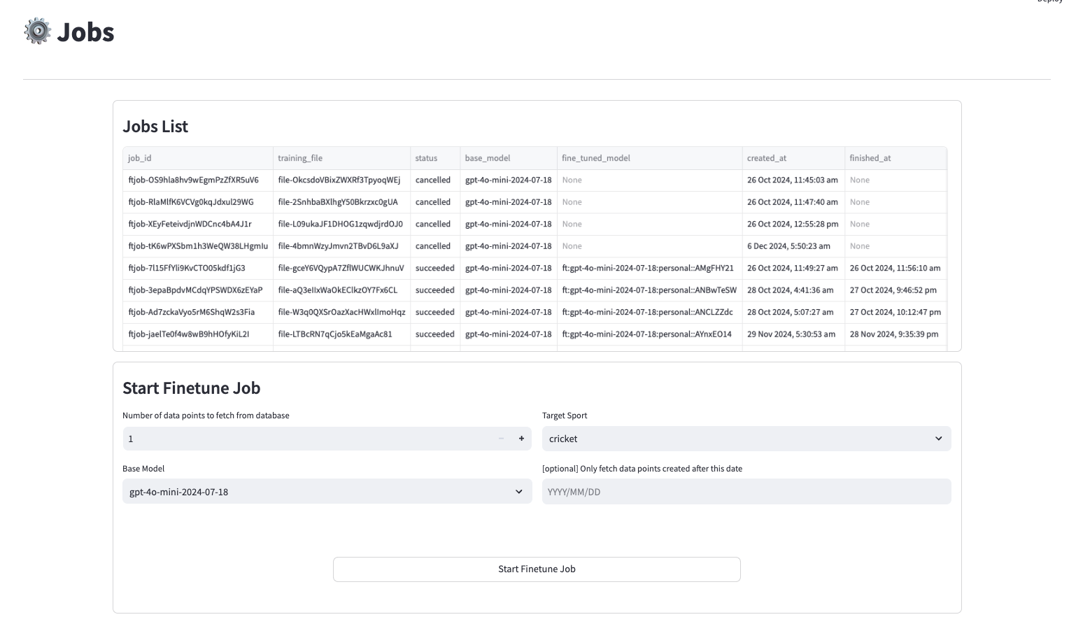 - Step 3: Model Training - Created a feedback pipeline where the latest verified fine-tuning data from testers (reviewed by managers) was used to start training jobs with OpenAI APIs, ensuring continuous model improvement.